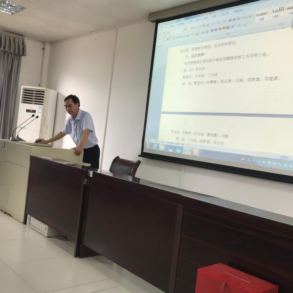 随后,开展了学院系科级干部试用期满考核动员,苏书记详细解读了学院考核工作方案和工作安排。强调指出建设一支信念坚定,为民服务,敢于担当、清正廉洁的高素质党政领导干部队伍,是学院事业顺利发展的重要保证。