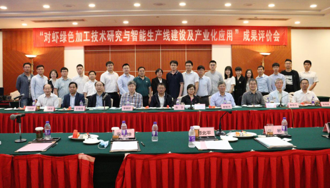 在成果评价会上,中国农学会成果评价处韩津琳副处长介绍了与会专家和领导,并简要介绍了成果评价的程序和要求;谭北平副校长致欢迎辞,并对成果评价的组织单位和专家表达了感谢。项目负责人吉宏武教授代表科研团队,汇报了近10年来在对虾绿色加工关键技术、智能生产线建设、产业化应用等方面的研究成果。专家组听取了成果汇报,审阅了成果研究报告和效益报告,核查了创新佐证材料,经质询和评议,一致认为该成果针对凡纳滨对虾无水保活困难、冷藏过程中肌肉劣变快、高附加值产品少、智能化加工缺乏等瓶颈问题,从基础理论、技术创新、新产品研发、智能生产线建设等方面开展研究,在对虾品质变化基础理论研究、保活保鲜、裹涂食品加工、虾肉糜制品与干制品加工等技术方面获得了多项自主知识产权,开发了系列化新产品,创建了对虾智能生产线,并进行了产业化应用,有力地提升了我国对虾加工业的科技创新能力,推动了我国对虾加工产业向全利用、高效益、智能化方向转型升级。成果总体处于国际领先水平。