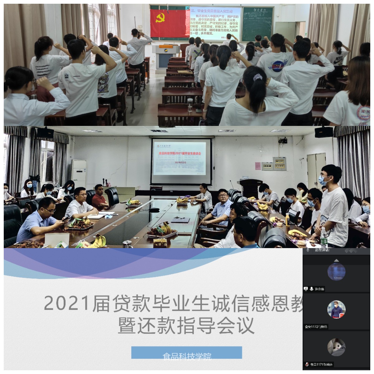 接受一场再教育,学会诚信感恩。6月3日下午,学院分管助学贷款工作辅导员许永强在腾讯会议平台召开2021届贷款毕业生诚信感恩教育暨还款指导会。贯彻落实国家资助育人政策,增强2021届贷款毕业生诚信感恩意识,帮助其掌握还本付息操作方法,教育受助学生珍惜国家、学校和社会各界的关怀和爱心,引导毕业生识恩、知恩、感恩、报恩、施恩。