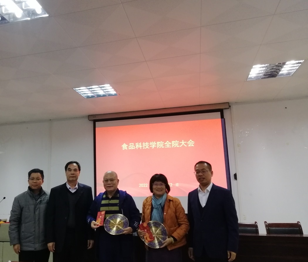 最后,为章超桦、潘江球和刘展雄3位退休教师举行了欢送仪式,院长刘书成代表学院对退休教师为学院做出的贡献表示感谢,衷心祝愿他们身体健康、家庭幸福,希望退休教师继续关心、参与、支持学院发展,为学院的改革、建设与发展贡献力量。章超桦教授深情回顾了williamhill中国20多年来不平凡的发展历程,勉励青年教师勇攀高峰,乘风破浪,祝愿学院越办越好。潘江球老师发表感言,有感谢,有祝福,表示将一如既往地关心和支持学院发展。学院领导向两位退休教师赠送了纪念品和慰问金,并与退休教师合影留念。