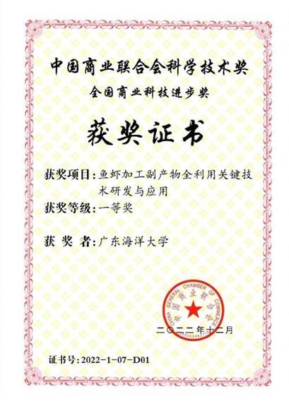 “鱼虾加工副产物全利用关键技术研发与应用”成果针对鱼虾加工副产物资源利用率低,多层次综合开发利用少以及产品附加值低等制约水产品加工业绿色发展的瓶颈问题,创建了鱼虾加工副产物高质食品开发、生物活性物质绿色制备以及残余物生物发酵制备功能饲料添加剂等多层次、多元化开发的副产物综合利用模式,实现了鱼虾加工副产物的全资源利用和绿色增值,对减少资源浪费,降低企业成本,增加企业经济效益,减少环境污染具有积极的现实意义。成果已在湛江、茂名、肇庆等地的多家企业进行了推广应用,取得了显著的经济、社会和生态效益。