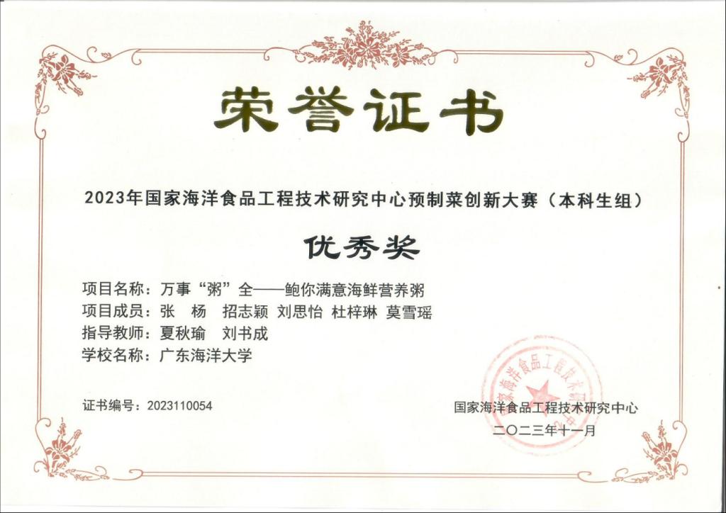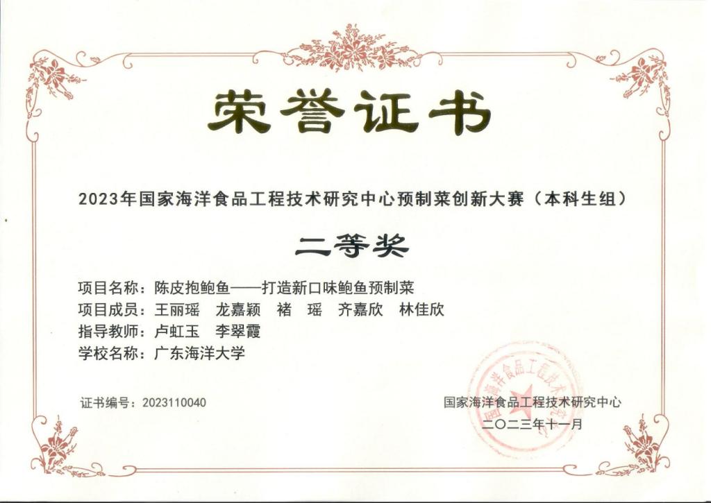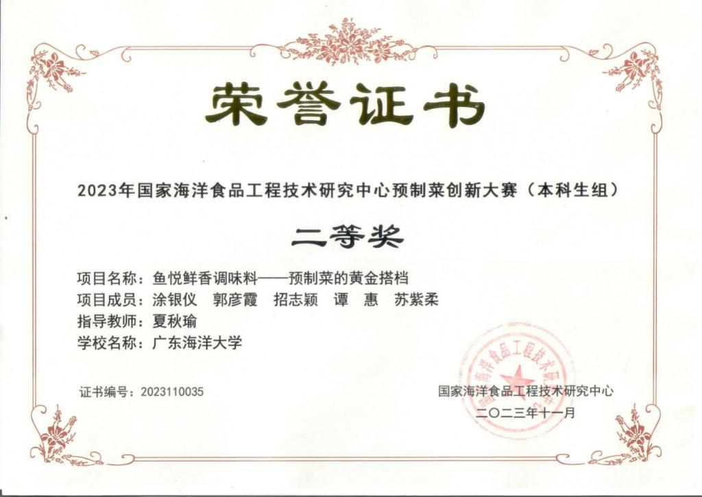 11月19日,由国家海洋食品工程技术研究中心(大连工业大学)主办的“2023年国家海洋食品工程技术研究中心预制菜创新大赛”在大连奥利加尔大酒店成功举办。本次赛事以“创新、健康”为主题,总决赛中共29支高校队伍同台竞技,我校有4支参赛队伍成功入围总决赛,最终获得二等奖2项、三等1项、优秀奖1项,同时我校还获得了大赛的优秀组织奖。通过比赛,激发了学生的创新思维,充分展示了我校williamhill中国学生的专业综合素养,同时也加强了校际之间的交流合作,为培养创新应用型人才发挥积极作用。