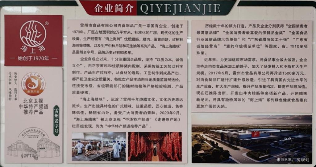 首先,调研组实地走访了肉食制品厂的生产车间与产品展厅,详细了解了腊味产品的生产工艺流程、生产设备以及丰富的产品线,对雷州市食品有限公司肉食制品厂在生产经营方面取得的成绩给予了高度评价。