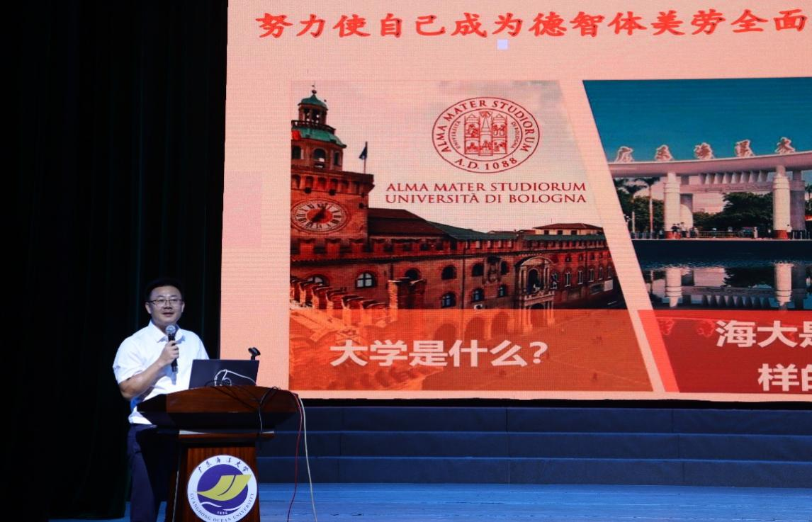 院长刘书成为新生作《坚持学科特色发展,服务南海资源开发》专题报告,介绍学校及学院的历史文化、学科优势、未来发展方向及对新生的期望。
