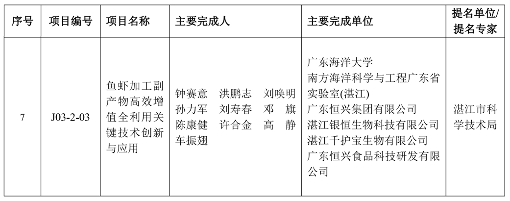 10月17日,广东省人民政府发布《广东省人民政府关于颁发2023年度广东省科学技术奖的通报》(粤府〔2024〕54号),williamhill中国钟赛意教授牵头项目“鱼虾加工副产物高效增值全利用关键技术创新与应用”荣获科技进步奖二等奖,威廉williamhill为第一完成单位。