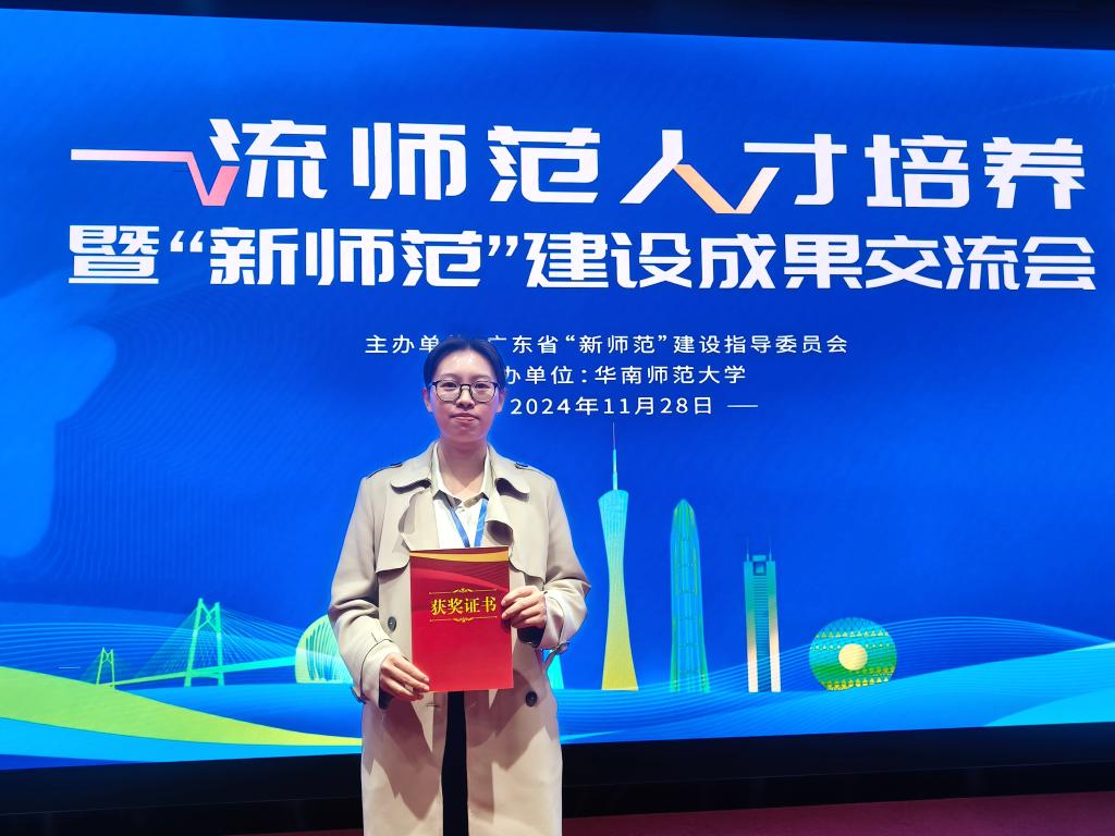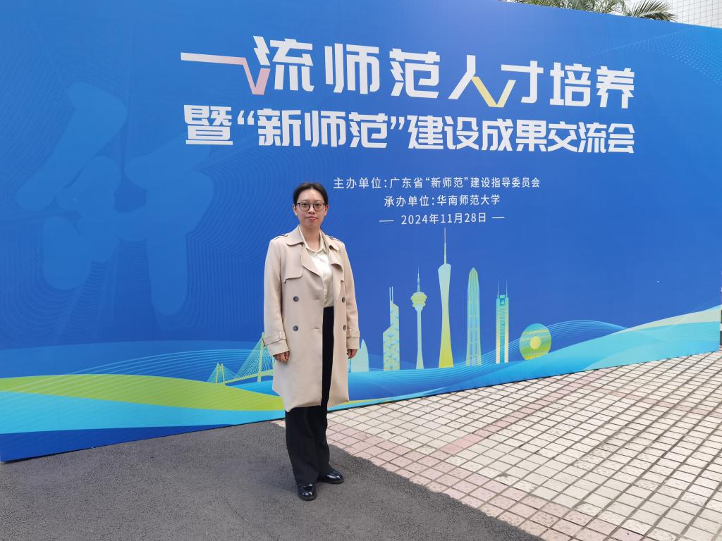 11月28日,一流师范人才培养暨“新师范”建设成果交流会在华南师范大学举行。我院陈傲蕾、刘书成、范秀萍提交的《以“一体两翼四轮五工联动”打造协同育人“运输机”——广东省“新师范”下的研究生育人创新实践》案例成功入选广东省“新师范”建设优秀案例,陈傲蕾作为代表应邀参加交流。