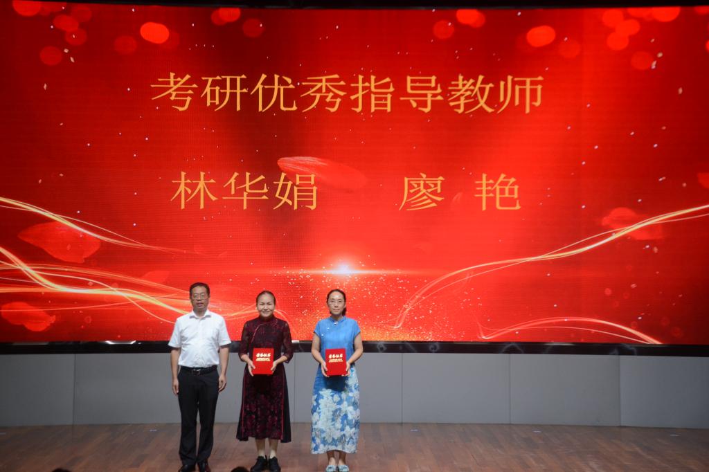 优秀毕业生代表李卓彦、考研优秀学生代表黄圣弘分别在会上发言,分享了推免、考研等方面的成功经验,并表达了对学校和学院的感激之情。考研优秀指导教师代表林华娟作考研指导经验交流发言,她以亲身的求学经历教育引导学生,保持积极乐观的心态,养成自觉、自律的良好学习生活习惯,并祝愿毕业生在新的人生征程上,继续乘风破浪,勇往直前。