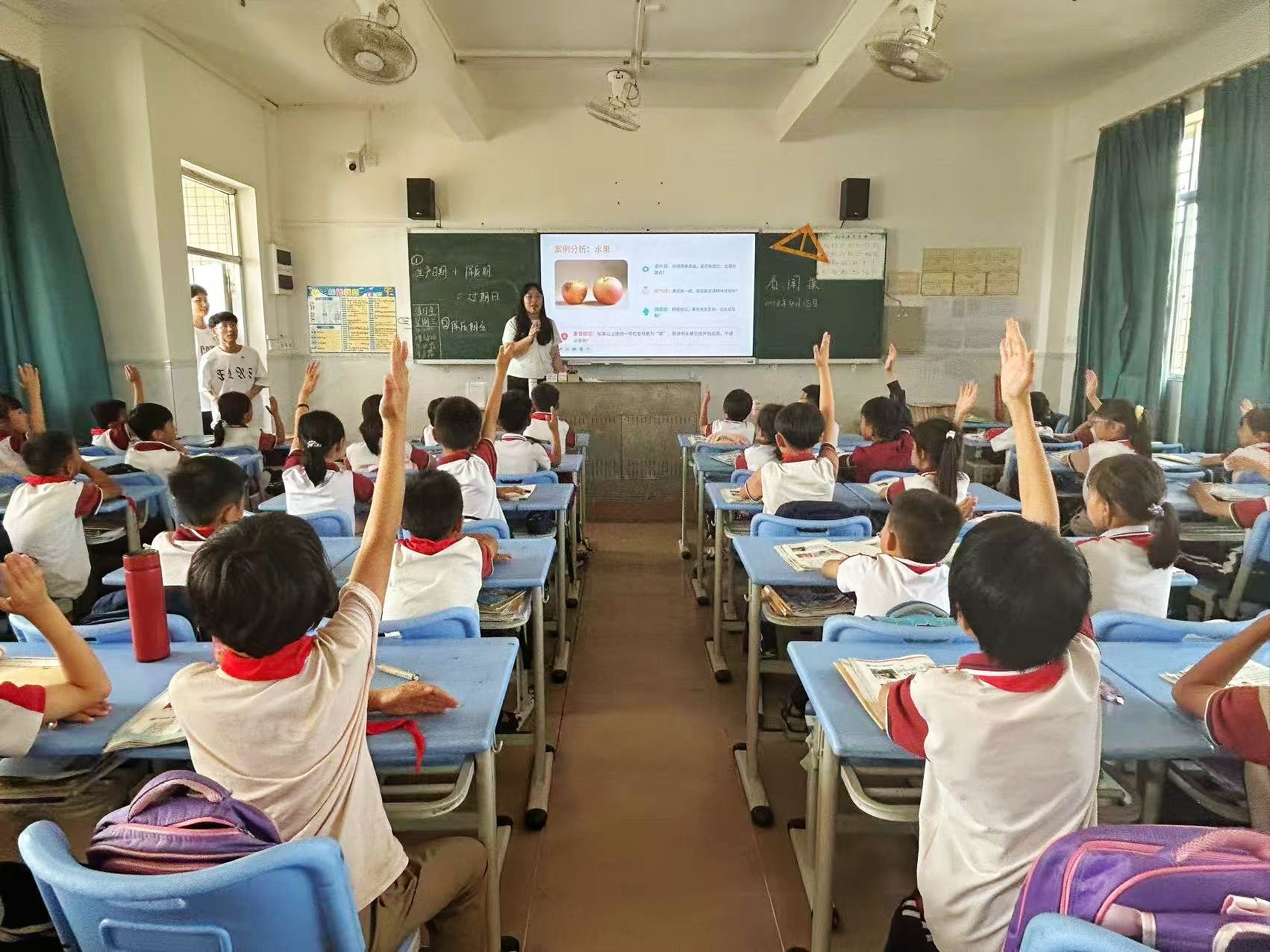 活动期间,师生一行还将思政教育延伸至下洋中心小学,将食品专业特色与红色教育有机融合。通过趣味讲解、互动体验等形式,向小学生普及食品安全知识,倡导健康饮食理念,切实筑牢校园食品安全防线。同时,以小麦为载体,串联粮食安全、榜样奋斗故事及徐闻解放海南的红色历史,引导青少年厚植爱党爱国情怀,传承红色基因,坚定理想信念。活动尾声,师生们还为当地孩子送上了亲手烘焙的小饼干,以食品人特有的温情与匠心,传递真挚关怀与甜蜜暖意。这一环节将思政小课堂与社会大课堂相结合,实现了思政教育从大学课堂向乡村小学的延伸。