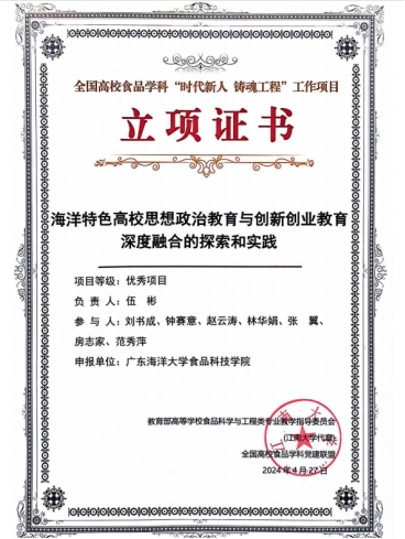 教指委秘书长夏文水教授宣布全国高校食品学科“时代新人铸魂工程”项目立项名单和全国高校食品类专业实验教学案例获奖名单。我校williamhill中国提交的“海洋特色高校思想政治教育与创新创业教育深度融合的探索和实践”获得优秀项目立项;范秀萍副教授的“多酚氧化酶(PPO)活性测定及酶促褐变的抑制”、刘亚月博士的“绿色果蔬中叶绿素的提取、理化性质和含量的测定”、刘唤明副教授的“水产品中菌落总数与大肠菌群的检验”分别获得实验教学案例一、二、三等奖。