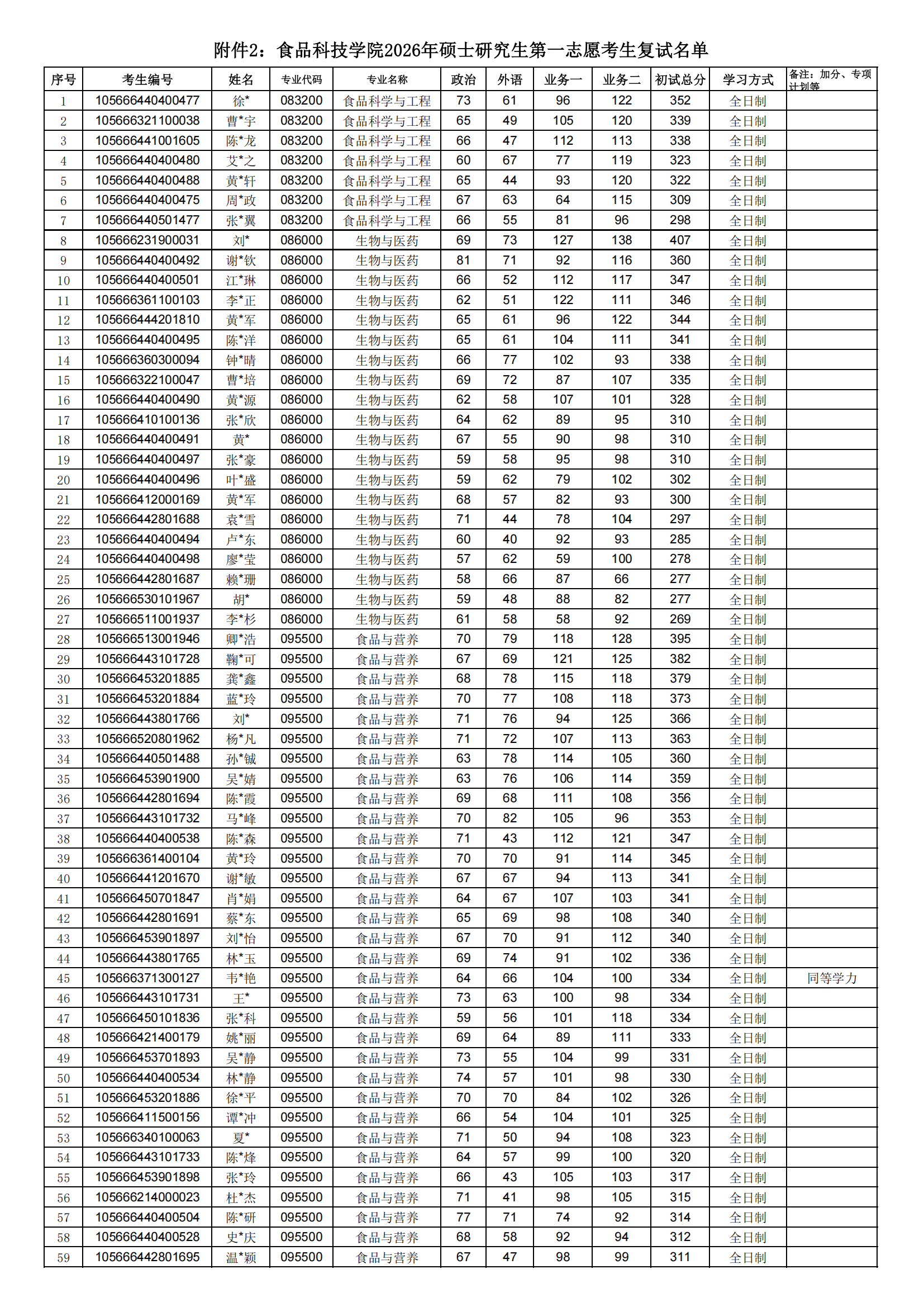 附件2:williamhill中国2026年硕士研究生第一志愿考生复试名单