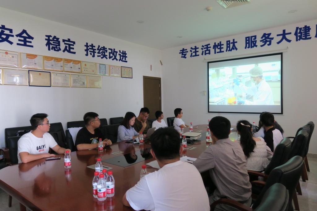 盛美诺公司陈忆宾总经理和翔泰渔业杨维总经理热情接待了我院师生。通过座谈会,了解企业文化、发展历程、水产品加工全产业链绿色健康可持续发展模式及大健康产业的发展前景。随后,在技术人员的带领下,师生们深入到加工下脚料利用车间(饲料厂)、活性肽生产车间(鱼鳞鱼皮高值化利用)、冷冻水产品加工及冷链仓储、分析测试中心等地方开展实习。同时,结合产学研合作需要,同学们参与沙虫肽和珍珠贝肽的中试生产实践。生产过程中,积极向技术人员请教和交流,学习并熟练操作中试设备,完成两批次的肽粉生产,取得较好的学习效果。