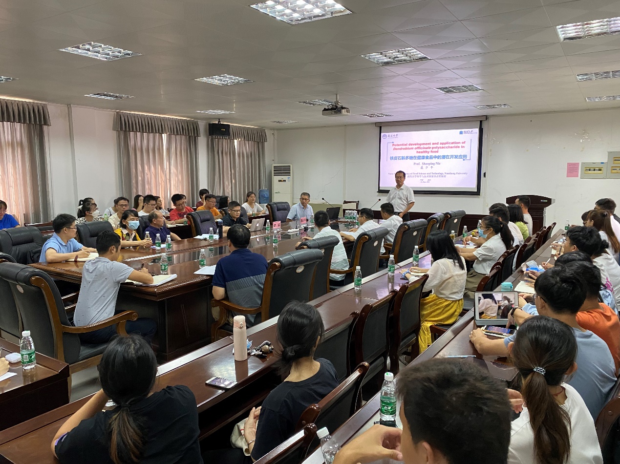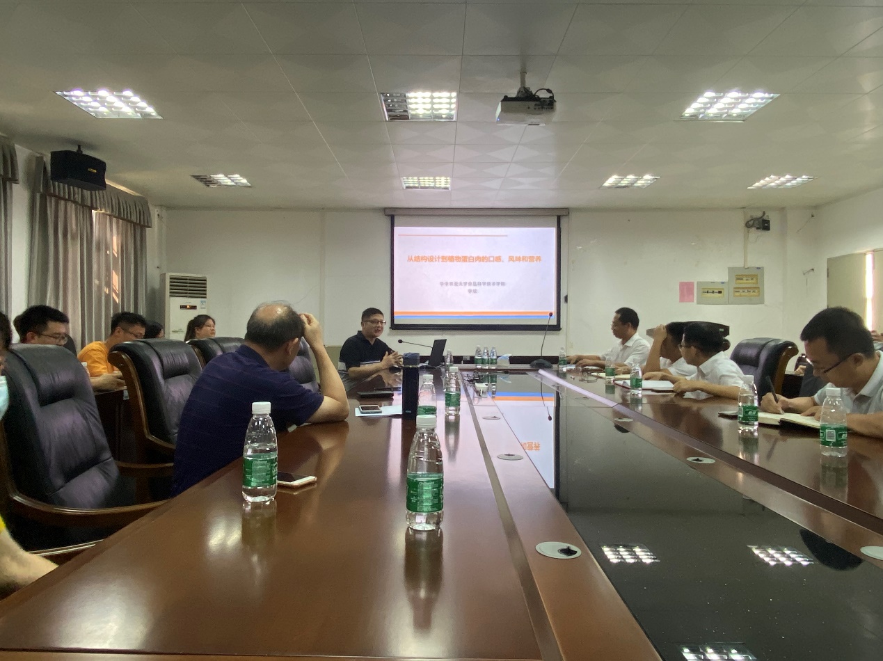 聂少平教授首先介绍了我国功能食品的市场现状,然后介绍了其团队在铁皮石斛多糖的提取分离、结构解析及生理功能等方面的研究概况。李斌教授从结构设计的角度切入,对植物蛋白肉的口感、风味和营养的形成和调控手段等方面的研究作了详细阐述。报告深入浅出、生动形象,为相关教师和研究生的研究提供了启迪。