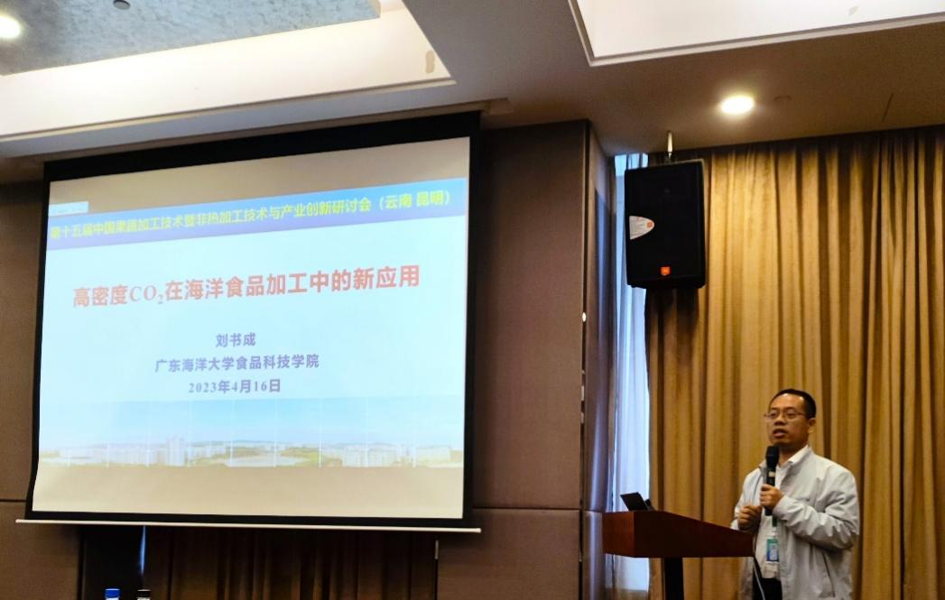 “第十五届中国果蔬加工技术暨非热加工技术与产业创新研讨会”于2023年4月15日-17日在昆明召开,会议由中国食品科学技术学会果蔬加工技术分会和非热加工技术分会主办,昆明理工大学食品科学与工程学院承办。在本次大会上,我校williamhill中国刘书成教授当选中国食品科学技术学会非热加工技术分会常务委员,并在食品非热加工分论坛上作了题为“高密度CO2在海洋食品加工中新应用”的研究报告,魏帅副教授也参加了本次会议。
