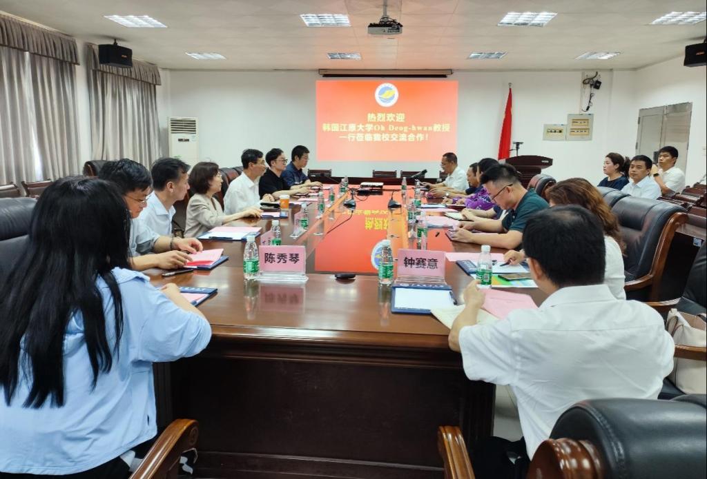 5月5日下午,韩国国立江原大学Oh Deog-hwan教授一行应邀访问了williamhill中国,交流会在望海楼williamhill中国A105会议室举行。我校副校长高秀梅、研究生院院长简纪常、人事处副处长曾令梅、科技处副处长伍彬、国际交流与合作处科长杨莉以及williamhill中国院长刘书成、副院长钟赛意、副院长赵云涛等出席了交流会。