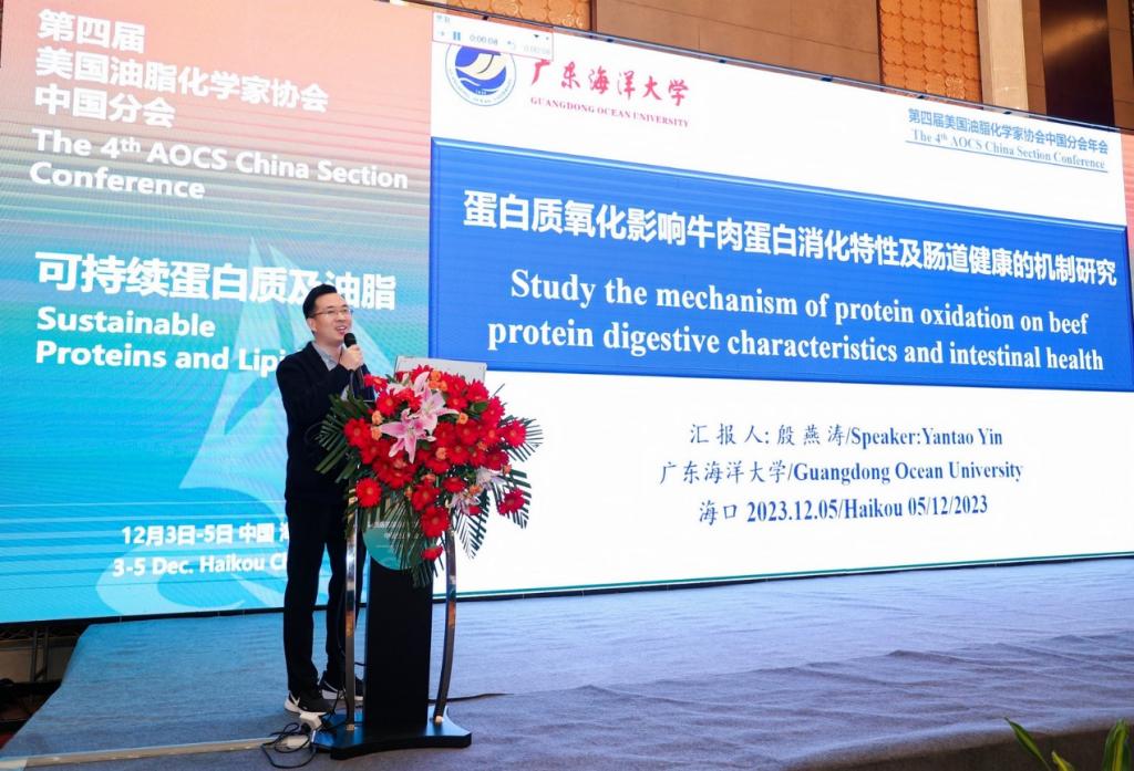 12月3-5日,williamhill中国夏秋瑜副研究员、刘庆冠博士及殷燕涛博士参加了在海口举办的“第四届美国油脂化学家协会中国分会年会”。夏秋瑜副研究员做了题为《鱼油的酶法富集改性及其高效稳定与递送》的学术报告,殷燕涛博士做了题为《蛋白质氧化影响牛肉蛋白消化特性及肠道健康的机制研究》的学术报告。