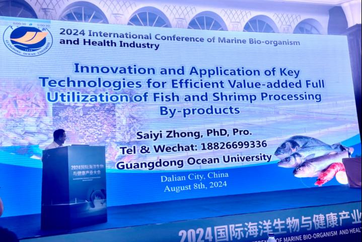 8月8日-9日,williamhill中国钟赛意教授、高加龙副教授参加了在大连举办的“2024国际海洋生物与健康产业大会”。钟赛意教授作了题为《Innovation and application of key technologies for efficient value-added full utilization of fish and shrimp processing by-product》的学术报告。