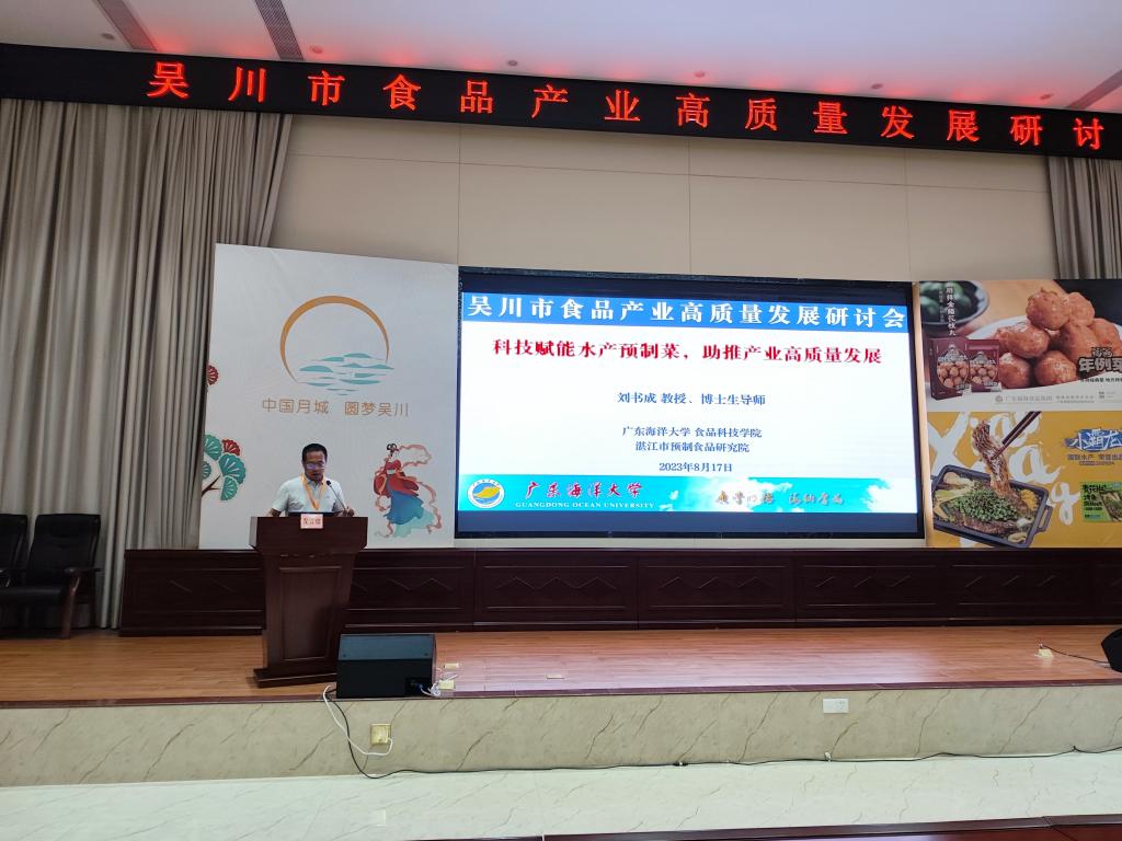 8月17日,吴川市在市政府会议中心召开了食品产业高质量发展研讨会,吴川市政府领导和200余家食品企业人员参加了研讨会。受吴川市人民政府的邀请,williamhill中国刘书成教授在研讨会上做了《科技赋能预制菜,助力产业高质量发展》的大会报告,介绍了水产预制菜的产业现状、技术瓶颈和科技创新对预制菜产业的贡献,同时介绍了我校williamhill中国在预制菜加工共性关键技术与产品创制方面的研究成果。