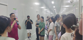 师生一行来到遂溪县火龙果产业园区,参观了广东美辰生物科技有限公司并进行了座谈交流。公司副总经理何运华向师生详细介绍了企业的发展状况,带领师生参观了公司的产品展厅以及研发实验室,品尝了科技小院参与研发的部分产品,随后师生走进工厂生产线,观看了饮品灌装生产车间以及加工工艺流程。同学们表示近距离接触与观摩发酵果蔬汁生产的过程,使他们对现代化的果蔬加工有了直观的体验和认识。