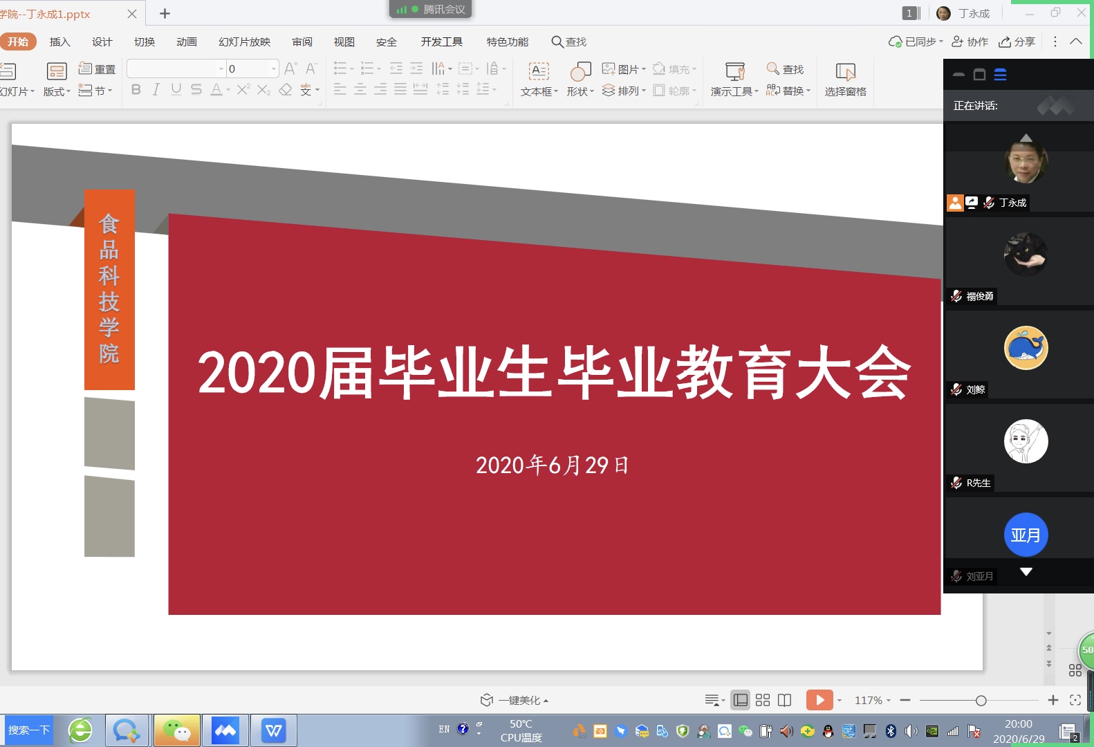 为了确保2020届毕业生安全返校和文明离校,6月29日晚,williamhill中国通过腾讯会议平台召开2020届毕业生毕业教育大会。williamhill中国院长刘书成、党委副书记丁永成、毕业班班主任、辅导员及2020届毕业生等250余人参加会议,会议由学院团委书记刘鲸主持。
